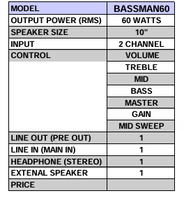 Control : Volume Treble Mid Bass Master Gain Mid Sweep