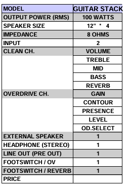 Clean CH. Volume, Treble, Mid, Bass, Reverb Overdrive ch Gain, Contour, Presence, Level, OD.Select